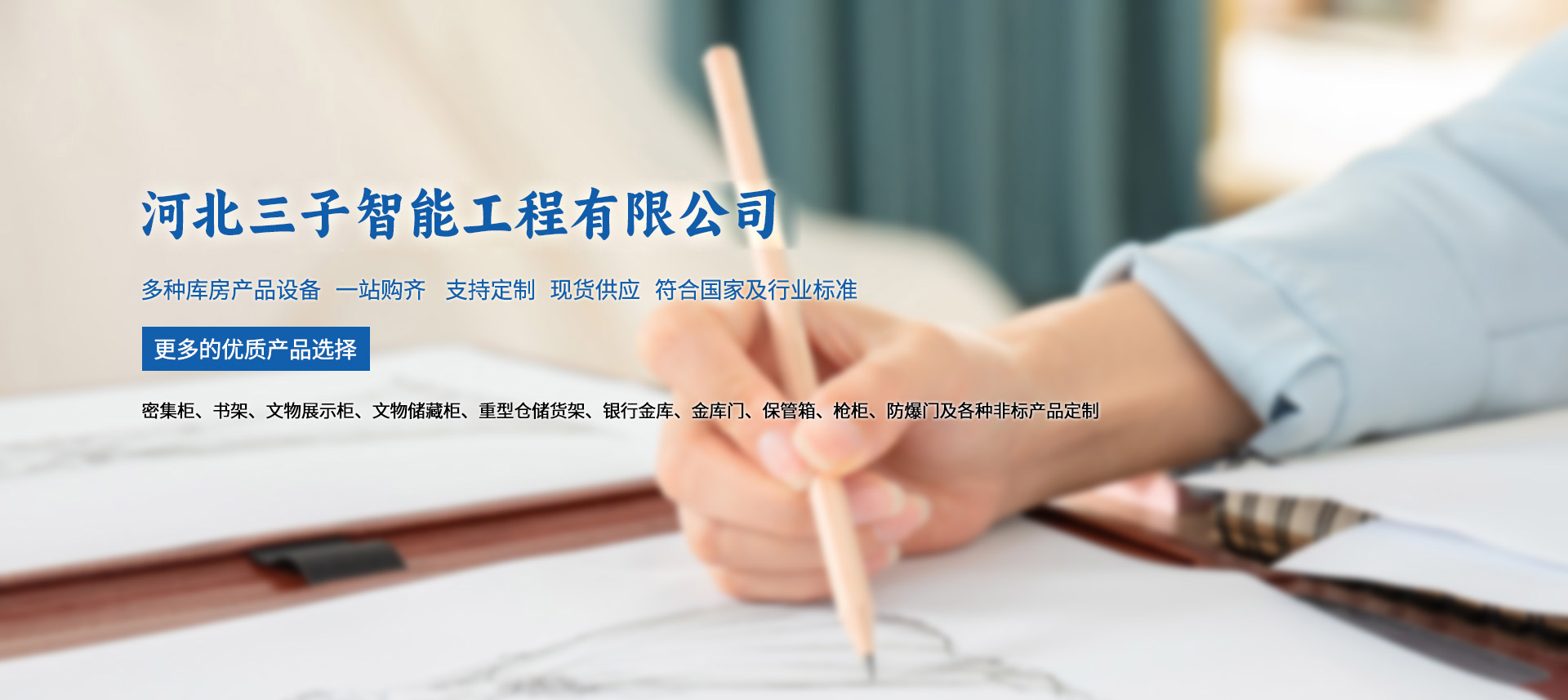 河北三子智能工程有限公司主營密集柜、書架、文物展示柜、文物儲藏柜、重型倉儲貨架、銀行金庫、金庫門、保管箱、槍柜、防爆門及各種非標產品定制。我們集研發(fā),設計,生產,銷售和服務于一體,擁有國內先進的設備和專業的制作團隊,我們秉承踏實,創(chuàng)新,責任的企業精神服務于檔案存儲,倉儲物流,農業部,博物館,美術館,銀行,部隊,學校等多個領域,我們始終堅持用戶至上和精益求精為客戶提供優(yōu)質的產品及服務。